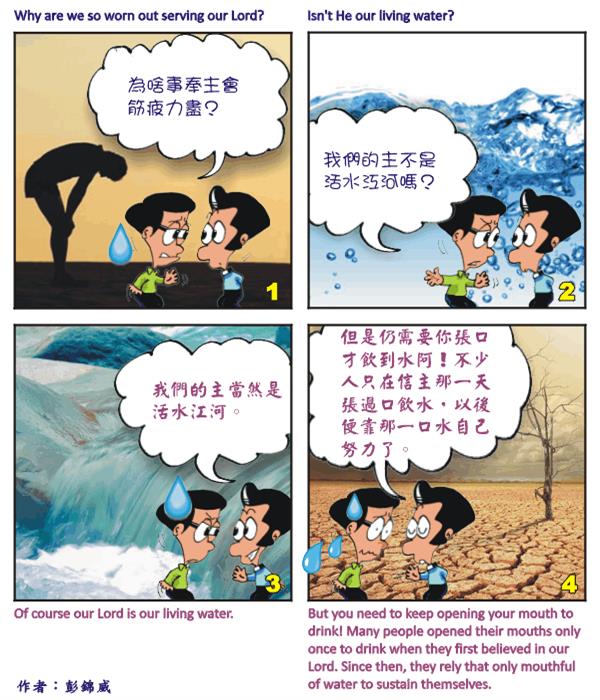 文章来源:华播,靈語甘霖我们可从信徒靠圣灵结出多少果子,看出他的状态来。结果子越多,生命就越像主。多结果子的秘诀在哪里呢?就是常常住在主里面,与他完全联合。因为只有基督的生命才能结出良善的果子,所以信徒必须常住在主里面,才能得到主源源不断的供应,不断成长,以至于越来越多结果子。如何常住在主里面呢?就是借着信心操练,常常读经,不住祷告,时时过顺服的生活。特别要强调的就是信心,就如希伯来书说:「人非有信,就不能得神的喜悦;因为到神面前来的人必须信有神,且信他赏赐那寻求他的人。」(来11:6) 不靠信心于基督,就不可能常常读经,不住祷告,过顺服的生活。信徒要多结果子,就要忠心顺服圣灵而行。钢琴家要经过许许多多的练习,才能弹奏出美妙的乐章。基督徒也要不断操练,才能更多更深经历主的信实和大能,信心才得以时时更新而加增。 瓦器 本文转载自《传递生命》